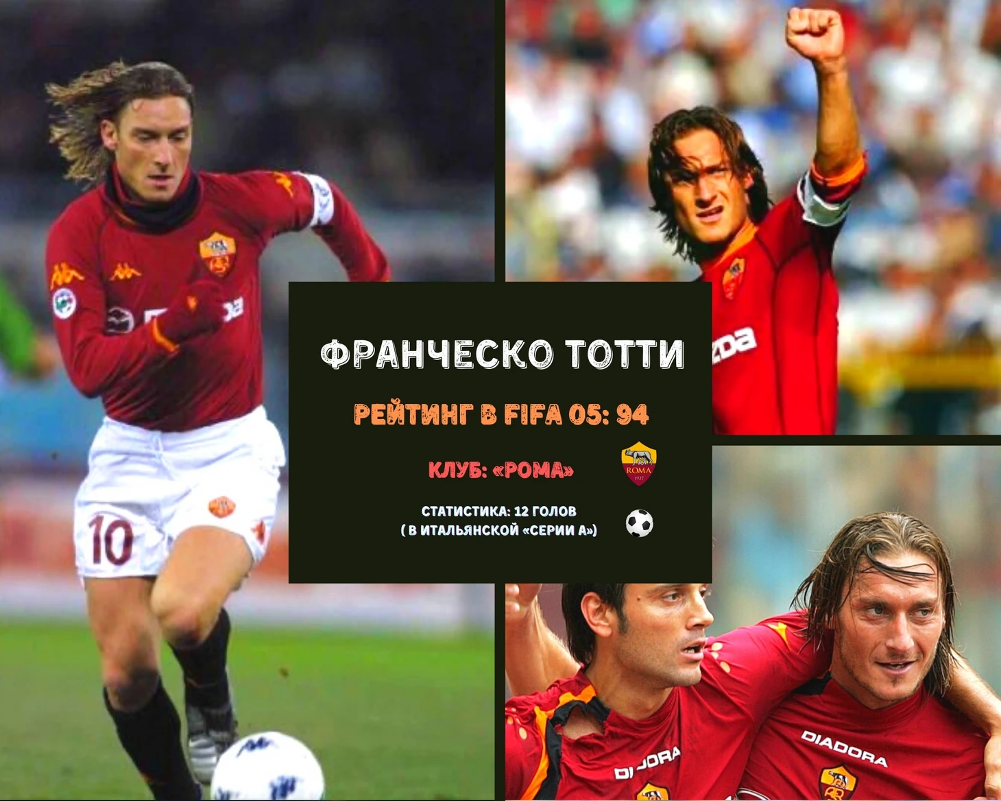 Легенда «Ромы», Франческо Тотти в сезоне 2004/05 в 29 играх чемпионата забил 12 голов и отдал 3 голевых паса. Римский клуб занял 8-е место в Серии А и дошел до финала кубка страны. При этом Атакующее трио «Ромы» в составе Тотти, Монтеллы, и Антонио Кассано стало самым результативным в лиге, на троих они забили 42 мяча. Тотти, помимо прочего, стал и самым недисциплинированным игроком чемпионата, получив 11 желтых и две красные карточки.