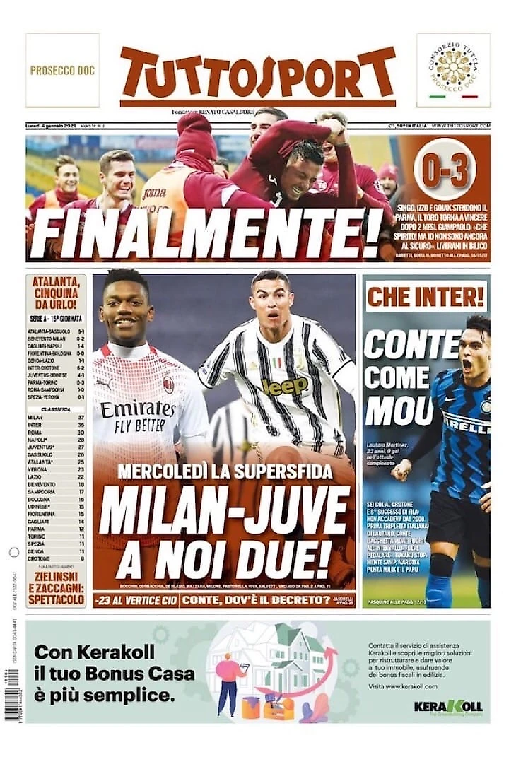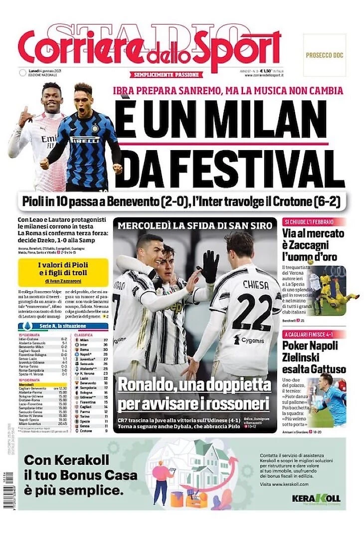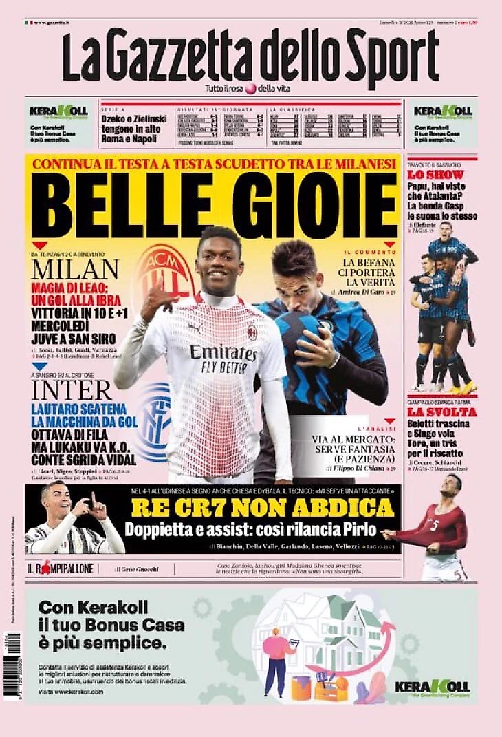 Красивые радости. Заголовки Gazzetta, TuttoSport и Corriere за 4 января