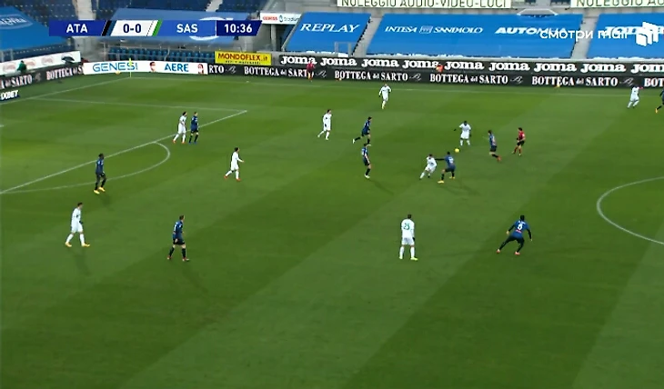 10. В конце первого тайма Аталанта повела уже в два мяча, организовав прекрасную атаку у чужих ворот. Гол в раздевалку окончательно убивает моральный дух Сассуоло.