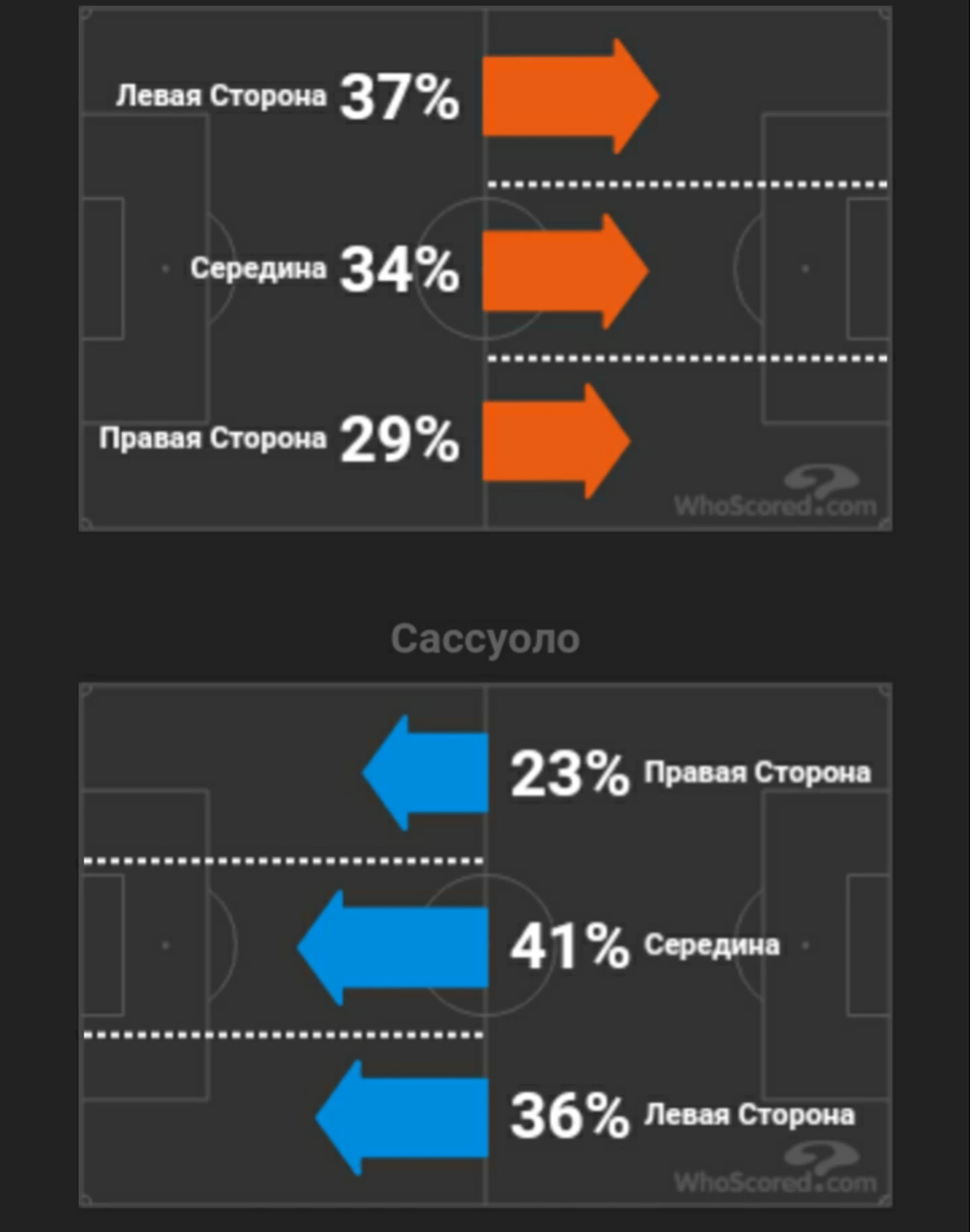 6. Аталанта строила свои атаки через центр Иличича, который зачастую опускался за мячом, а после переводил его на фланги. Сассуоло потеряли в этой игре главного художника своей команды - Беррарди, которого персонально опекали два игрока.