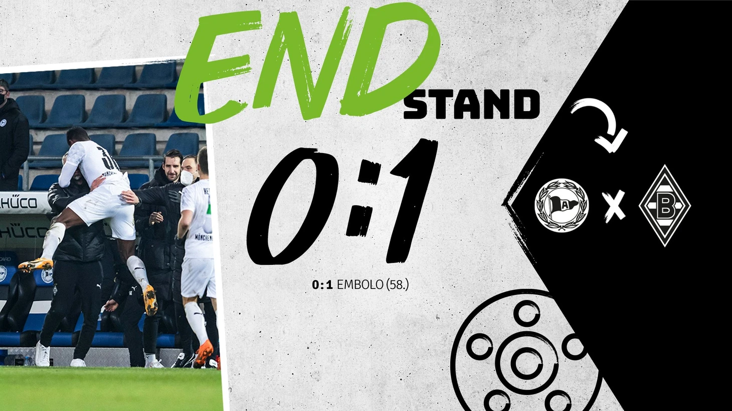 А во втором тайме Эмболо после передачи Хоффмана в своем стиле оттер от мяча защитника, в очередной раз оказался с глазу на глаз с вратарем… и, наконец, забил! Форвард и его одноклубники радовались этому так, как будто еще раз вышли в плей-офф Лиги Чемпионов. В оставшееся время «Боруссия» предпочла не рисковать и в основном сосредоточилась на удержании счета, в чем и преуспела. У хозяев был только один полумомент за пять минут до конца, когда Ябо неплохо приложился из-за штрафной, но мяч попал в голову одному из защитников.