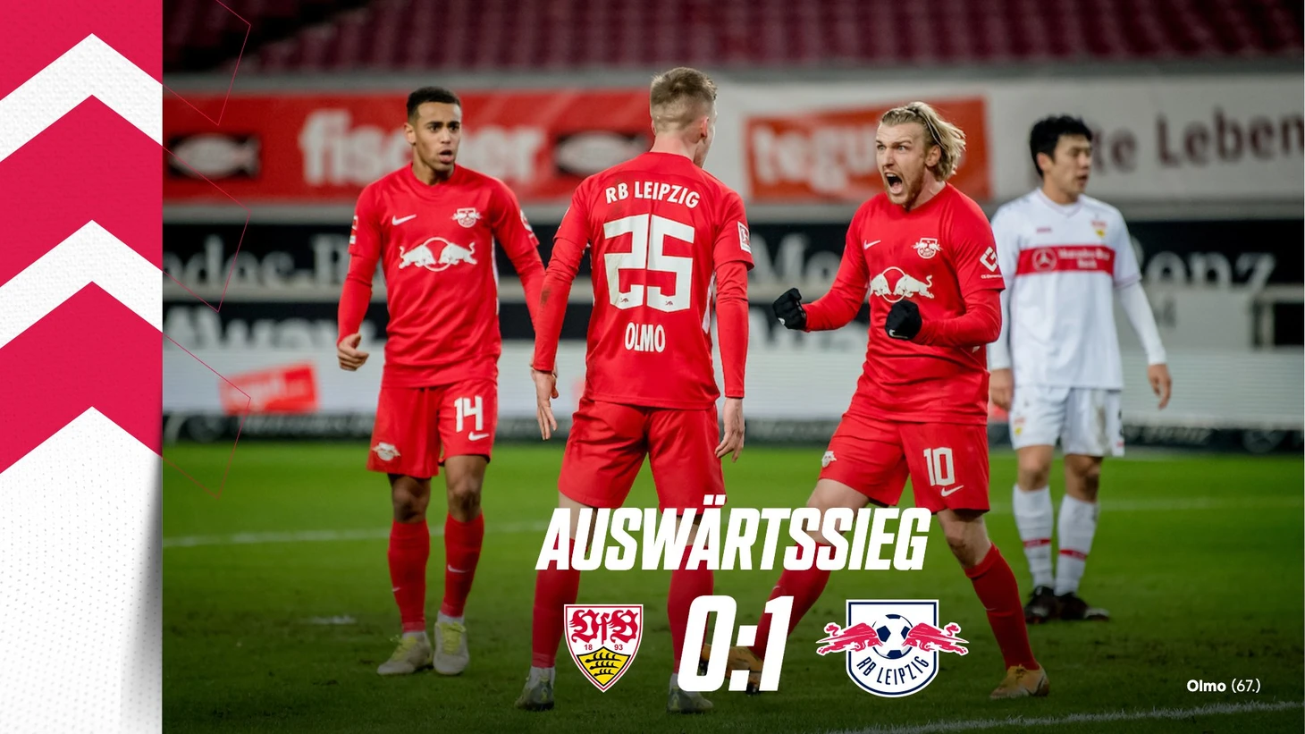 Гости в этой игре полностью переиграли хозяев, не дав развернуться быстрой и креативной передней линии «Штутгарта». В первом тайме Форсберг не реализовал пенальти, назначенный за свой же снос (Кобель совершил впечатляющий сэйв), но после перерыва «РБ» усилил давление и Олмо с подачи как всегда активного Анхелиньо все-таки пробил Кобеля. Счет неоднократно могли увеличить Форсберг и Айдара, но не хватало точности.