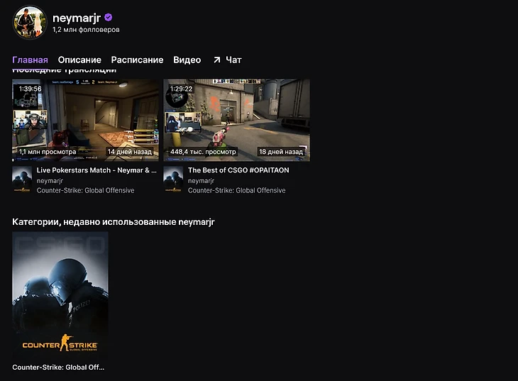 Так же Неймар стримит и на Твиче. На его аккаунте уже более 1,2 млн. фолловеров