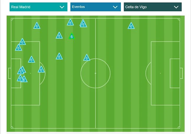 Карта успешных защитных действий Начо с матче с «Сельтой»: выносы мяча, отборы, единоборства и блокированные удары