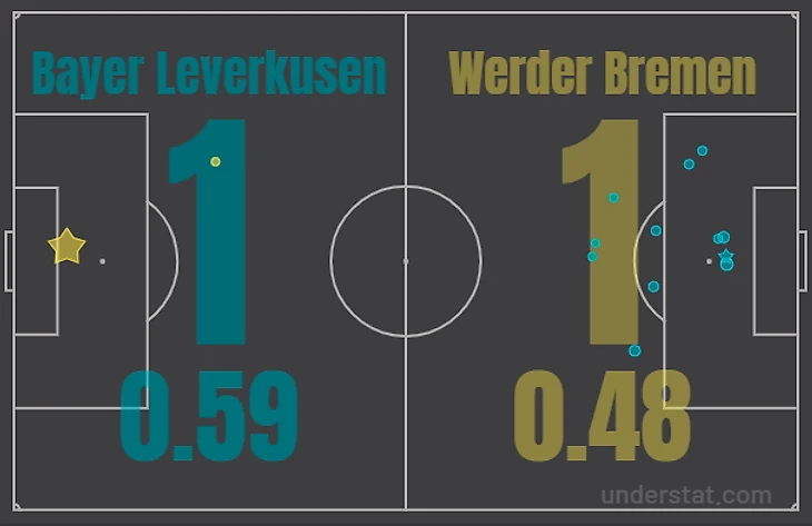 «Байер» проигрывал до середины второго тайма после того, как на 52-й минуте Йомер Топрак забил после навеса. В итоге отыграться удалось лишь на 70-й: мяч попал в ворота гостей после нескольких рикошетов от удара Патрика Шика. Однако изначально гол не был засчитан из-за подозрения в игре рукой Лукаса Аларио, но проверка VAR подтвердила правильность взятия ворот.