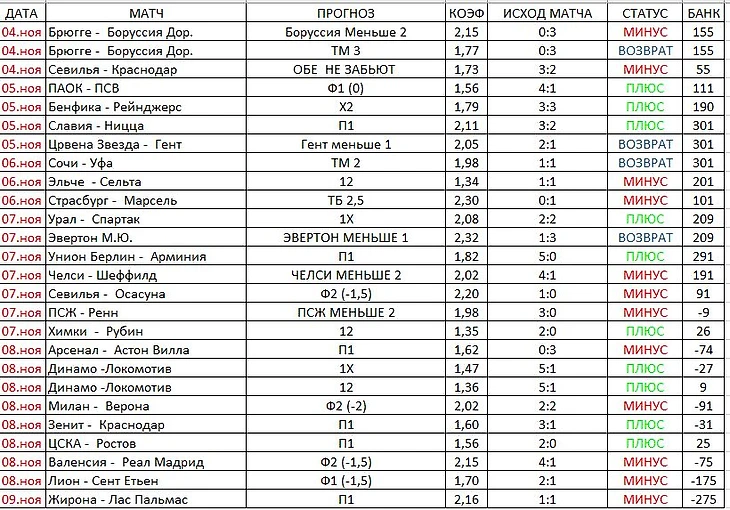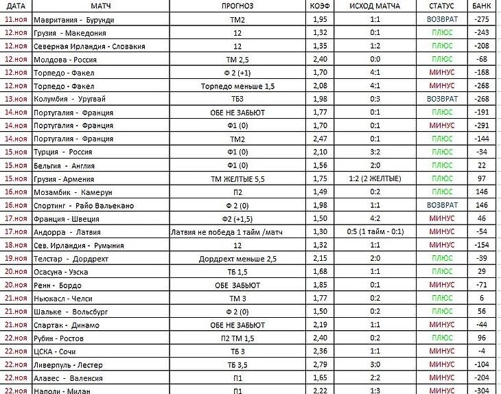 Все прогнозы можно отследить практически на месте и сразу, не нужно ждать недели, или месяцы, мы взяли все прогнозы с 4 октября 2020 по 6 января 2021 года, и вы наглядно можете увидеть, к чему приведет такая банальная стратегия.