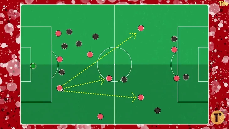 Эффект от этого имеет две стороны: во-первых, соперник может быть включен в активный прессинг, что нарушит позиционную структуру "святых", уводя их от преследования собственных целей. Во-вторых, это означает, что "Саутгемптон" может переключаться и перемещать мяч очень быстро, как только появляется возможность. Это изменение темпа - разрушительное оружие, потому что оно может застать соперника врасплох, особенно если у "Саутгемптона" задают темп такие великолепные игроки в лице Кайла Уокера-Петерса, Тео Уолкотта и других. Это движение мяча, которое создают игроки "Саутгемптона" имеет тенденцию принимать форму повторяющихся пасов на широкие площади поля или быстрых вертикальных движений мяча по центру.