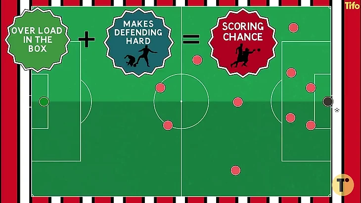 Это преобладание игроков становится следствием перегрузок зон, что затрудняет защиту сопернику, создает трудности для чужого вратаря и свидетельствует, что есть игроки, которые могут отступить или последовать за игроком, если удар или пас заблокирован.