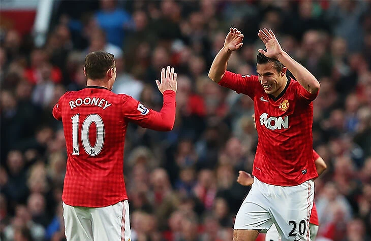 Приход Робин Ван Перси летом 2012-го отодвинул Руни с первых ролей в атаке «МЮ». Но талант Уэйна всегда был шире, чем просто голы. У него 103 ассиста в Премьер-лиге. Последствия одного из них – на фотографии: РВП благодарит за чудесный заброс в чемпионском матче с «Виллой» (22 апреля 2013-го).