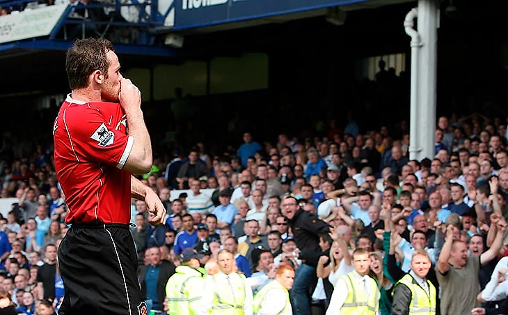 Весна 2007-го. «МЮ» превращает 0:2 с «Эвертоном» в 4:2, а Руни целует эмблему с дьяволом на глазах «Гудисон Парк». Многие из людей в кадре помнят майку «Once a Blue, always a Blue», которой Уэйн некогда показывал любовь к родному клубу – в тот день это стало далеким прошлым. Из-за ярости трибун Фергюсон потом будет иногда обходиться без Руни в матчах здесь.