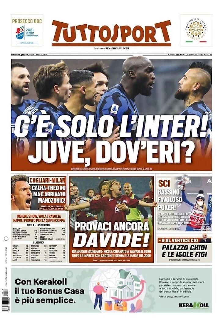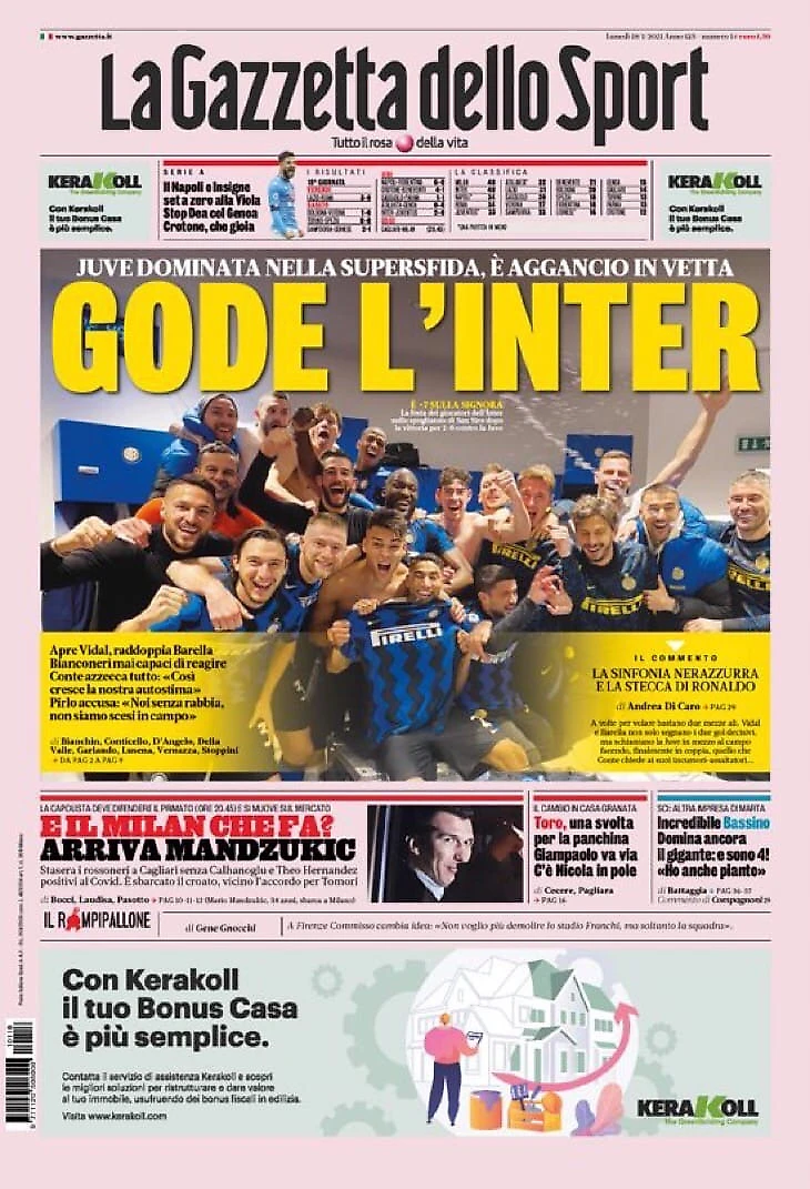 Есть только «Интер»! «Юве», где ты был? Заголовки Gazzetta, TuttoSport и Corriere за 18 января