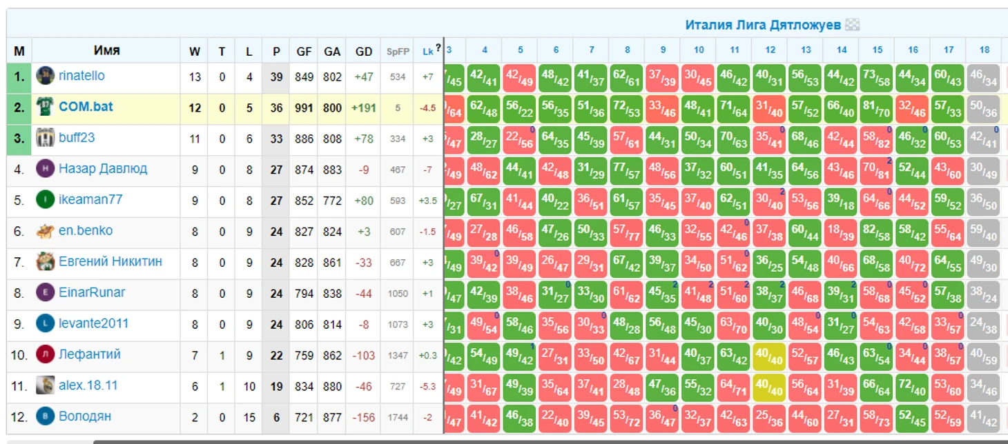 А еще примечательно - 3 нижних строчки лички занимают игроки одной команды группового зачета. При чем Назар без замен все еще опережает своих коллег. Спишите уже у него состав, посаны.