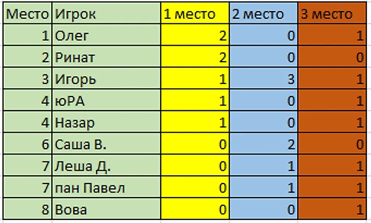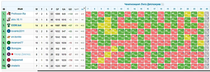 Но что приятно - абсолютно все могу зацепиться за тройку - жалкие 7 очков отрыва.