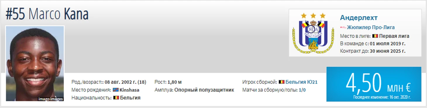 Марко 18 лет, но он успел уже провести 24 матча за основную команду Андерлехта, при чём выступая на очень ответственных позициях опорного полузащитника и центрального защитника. Футболист прошёл все возраста юношеских сборных Бельгии и в октябре 2020 провёл первый матч за молодёжную сборную Бельгии U-21. Сайт transfermarkt в очень большие деньги оценивает игрока Андерлехта 4.500.000 евро. Игроком уже очень настойчиво интересуются такие клубы, как Наполи, Аталанта и Лилль. Из качеств выделим технику, передачи, отбор и игру на команду.