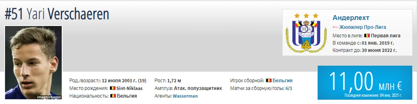 Яри на мой взгляд всё же главный молодой актив бельгийской лиги. Игрок универсал и способен сыграть на 4-х позициях (центрального и атакующего полузащитника, левого и правого вингеров). Сайт transfermarkt оценивает игрока в 11.000.000 евро и сейчас он занимает 5-е место среди всех футболистов бельгийской лиги. Игрок вызывается в национальную сборную Бельгии и уже провёл за неё 6 матчей и отличился 1 раз. У игрока на топовом уровне большинство качеств необходимым для игрока его позиции.