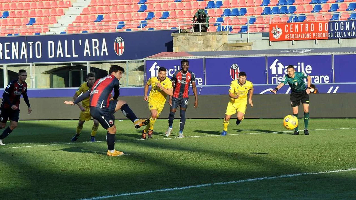"Болонья" добилась первой победы с ноября прошлого года, минимально переиграв на своем поле "Верону", которая до этого уступила лишь однажды на выезде. Единственный мяч был забит нападающим Риккардо Орсолини с пенальти на 19-ой минуте. Нарушению правил в штрафной предшествовала атака хозяев, в ходе которой Орсолини мог забивать с игры, но вратарь гостей Марко Сильвестри отразил его удар в упор, после чего сфолил на подобравшем мяч Роберто Сориано. "Мастифы" были наиболее близки к тому, чтобы отыграться после выхода один на один форварда Николы Калинича на 63-ей минуте, однако отменная реакция голкипера хозяев Лукаша Скорупского позволила оставить ворота неприкосновенными. "Болонья" вымучила победу и отдалилась от зоны вылета на относительно безопасное расстояние. "Верона", не забив впервые за 10 последних матчей, по итогам турам упускает шанс сравняться по очкам с "Сассуоло".