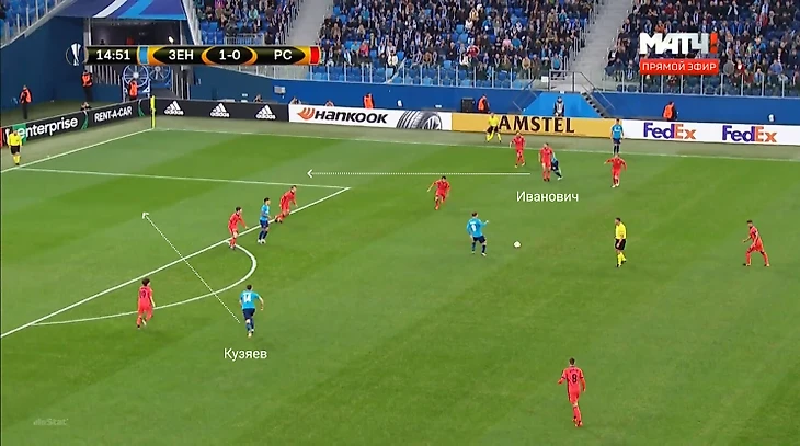 Еще один несомненный плюс – в первое время при Манчини «Зенит» обладал самым качественным прессингом в РПЛ. Кокорин всю предсезонку учился давлению, поэтому его отлично встроили в контратаки: партнеры перегружали один из флангов и держали ширину на противоположном. Кокорин хорошо понимал этот автоматизированный футбол и был крайне полезен.