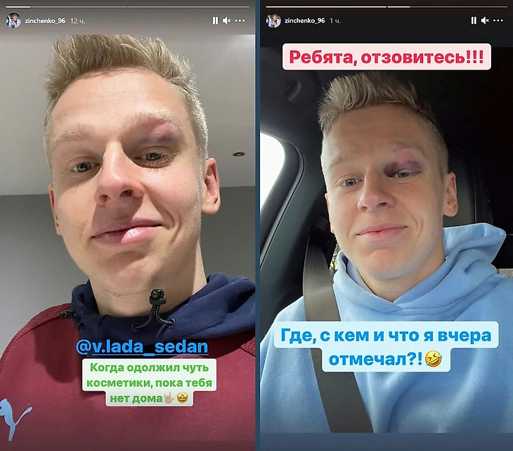 «Ребята, отзовитесь! Где, с кем и что я вчера отмечал?!» – добавил украинец в сторис, когда синяк стал проявлять себя еще активнее.