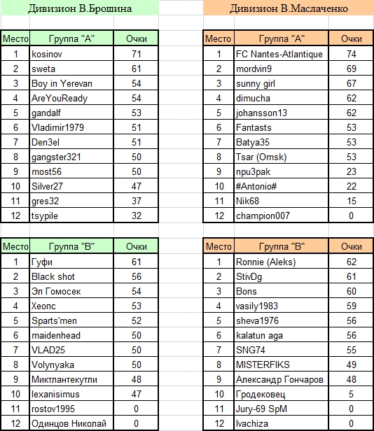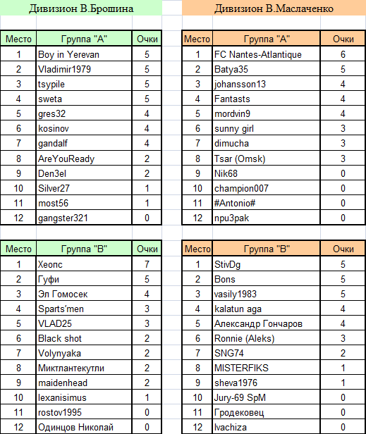 Турнирное положение в группах и Дивизионах после сыгранного тура таково: