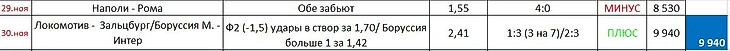 За ноябрь - 17 минусов, 19 плюсов и 1 возврат. На сей раз мы видим мало событий с коэффициентами 1,50. Вернее зашедших событий с этим коэффициентом. Заходят приятные 2,70 / 2,41 / 2,56, и все это - экспрессы. Но банк все равно не готов повторить сентябрьских результатов, даже и близко, правда там и прогнозов было больше. Пока констатируем: 60 рублей минуса.
