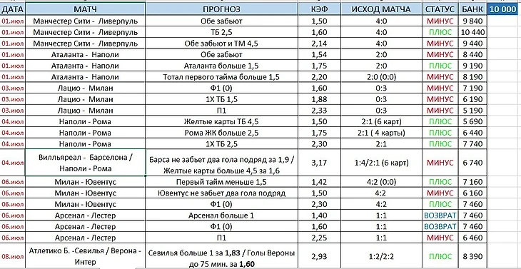И по классике, банк наш это 10 000 рублей, сумма одной ставки - 1000 рублей. Ставим на одинары, и экспрессами тоже не брезгуем. Погнали! Начинаем с июня.