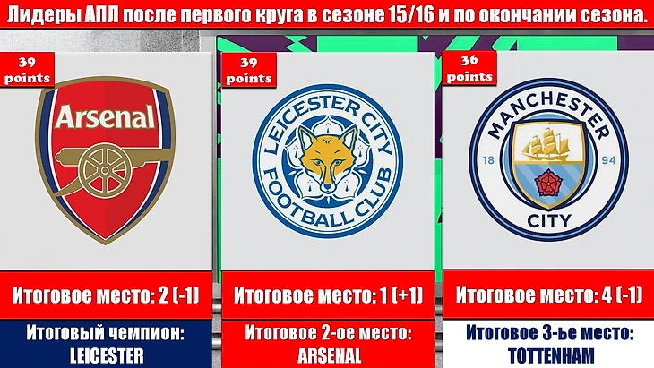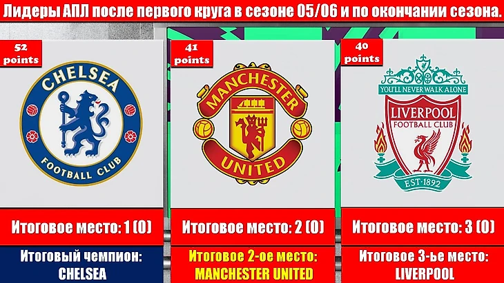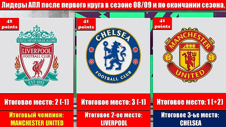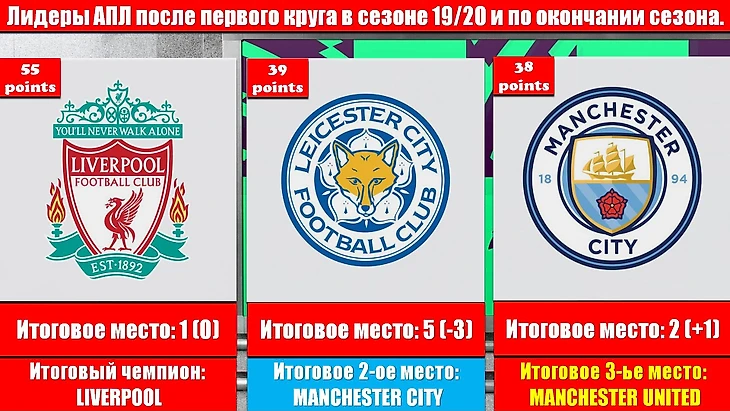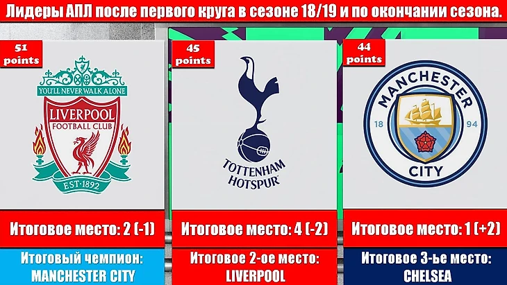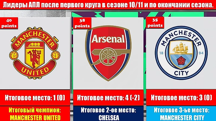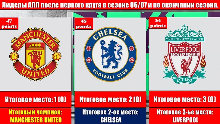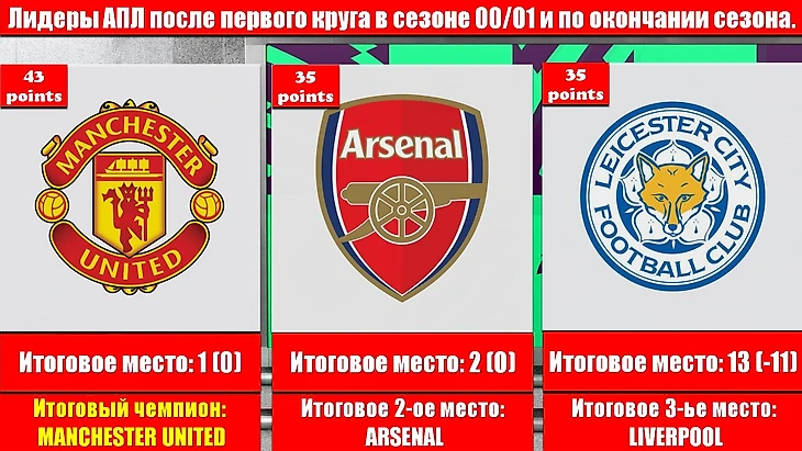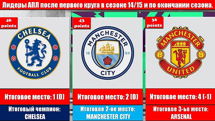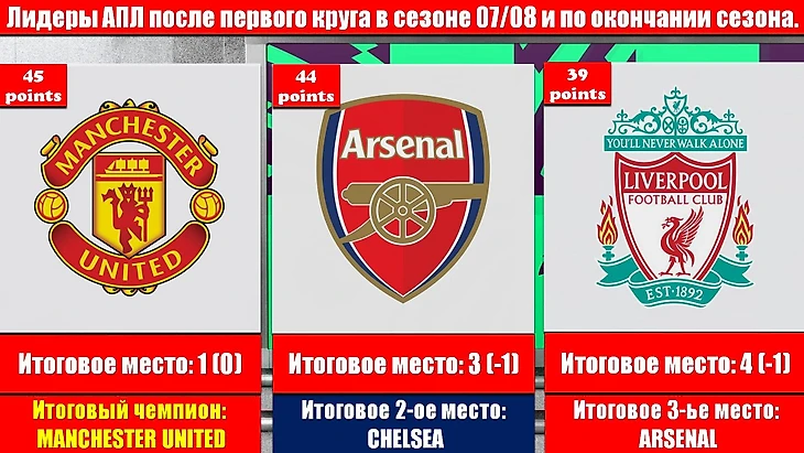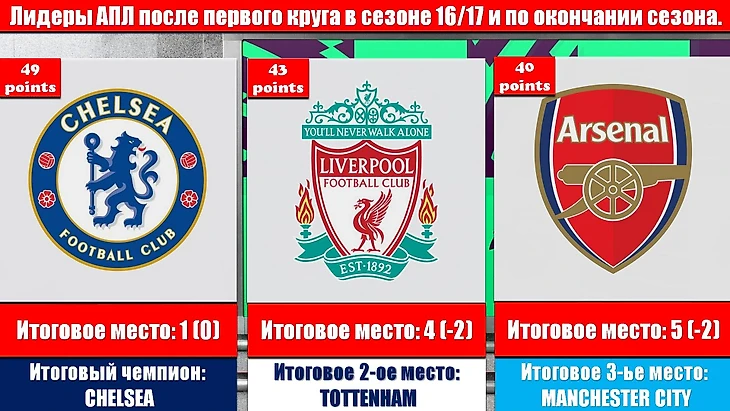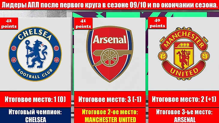 Лидеры АПЛ после первого круга. Сезон за сезоном. Кто лидировал после первого круга, а кто по окончании чемпионата. Кто обрел, а кто потерял.