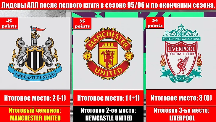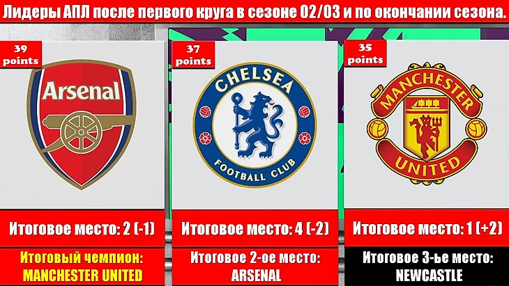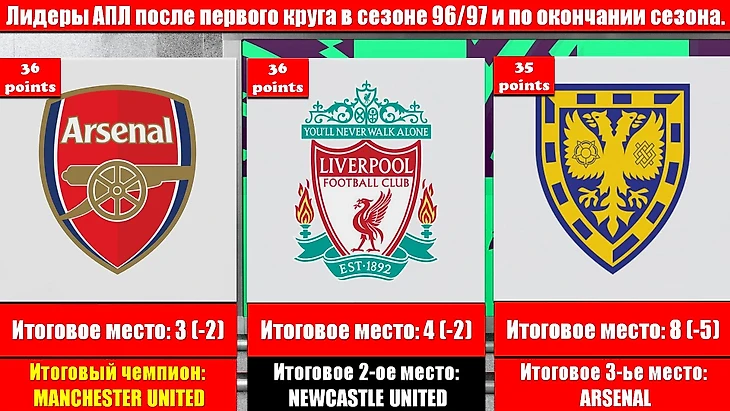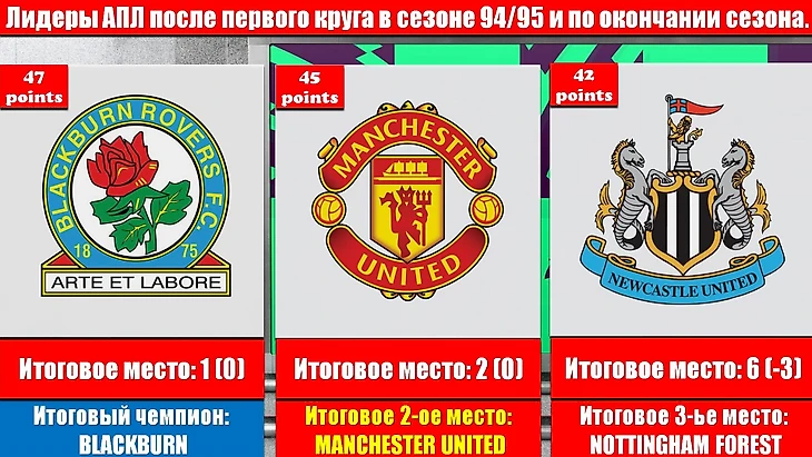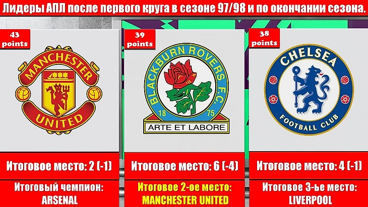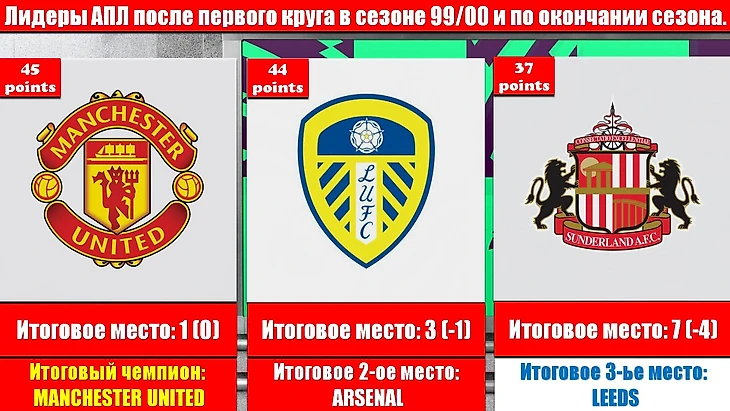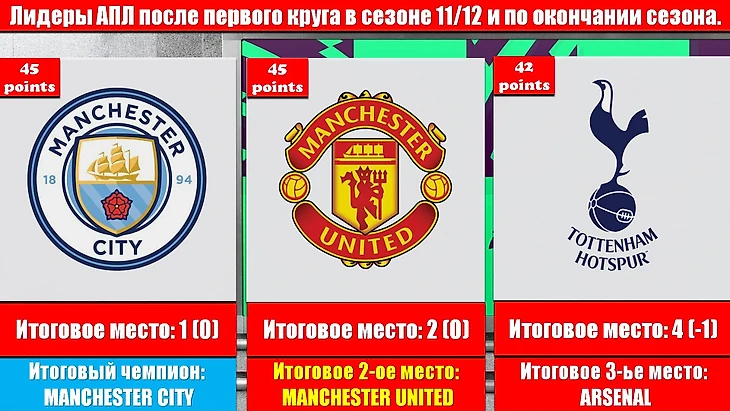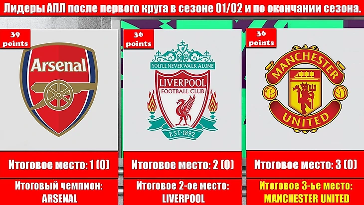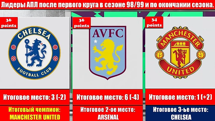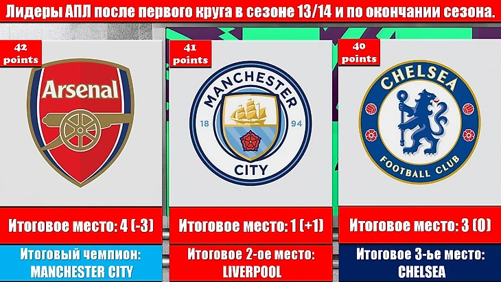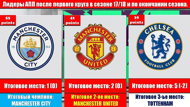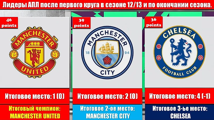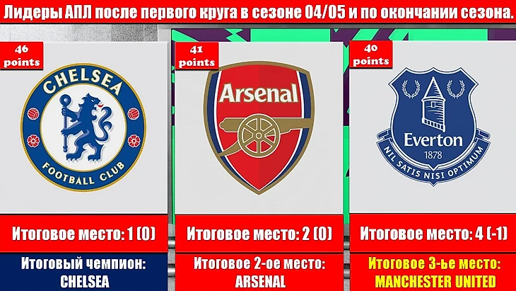 Лидеры АПЛ после первого круга. Сезон за сезоном. Кто лидировал после первого круга, а кто по окончании чемпионата. Кто обрел, а кто потерял.