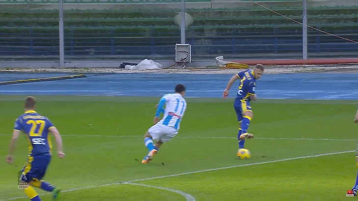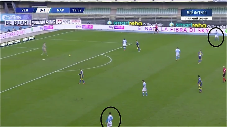 9. Во втором тайме Верона сыграла очень образцово, сделав выводы по игре соперников в первой части игры. Хозяева попросту отдали Наполи мяч(61-39 в пользу Наполи по владению мячом во 2 тайме), и стали строже играть в обороне. Это в первую очередь сказалось на Лосано- его прорывы больше не работали. Опорники Вероны также играли глубже, не оставляя свободных зон.
