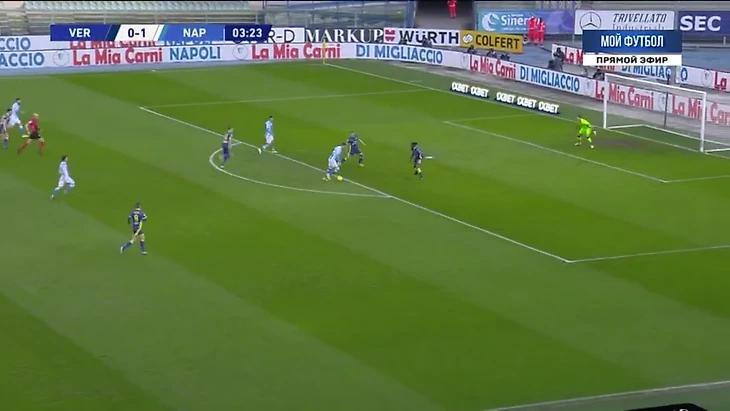Через несколько минут после гола у Наполи был ещё один неплохой момент, однако Зелинский, который провел этот матч посредственно не смог извлечь из эпизода хоть что-нибудь.