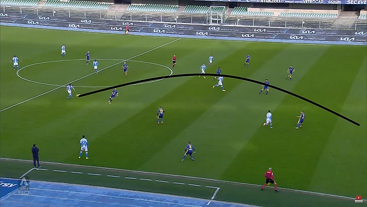 5. Были ещё 2 сценария для начала атак: длинные передачи Кулибали на Лосано, или же вертикальные передачи в свободную зону на правом фланге. В 1 тайме за счет скорости Ирвинга это работало, и он разгонял атаки своей команды.