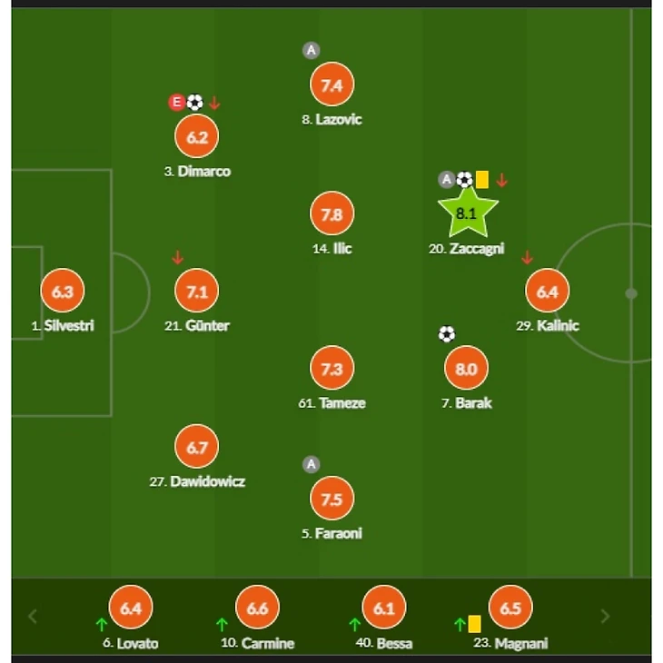 2. Что же о Вероне, то Иван Юрич решил сделать лишь одно изменение- вместо Маньяни на поле появился Тамез.