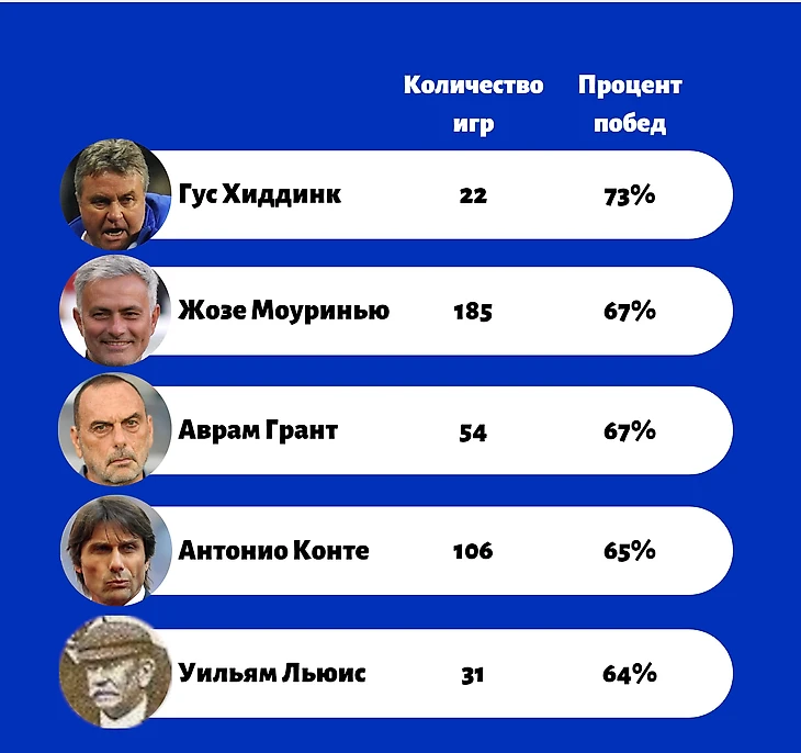 Грант - третий по проценту побед из всех тренеров "Челси", но в дальнейшей путь "Челси" повел уже новый тренер.