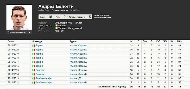 Можете взглянуть на статистику Андреа Белотти своими глазами.