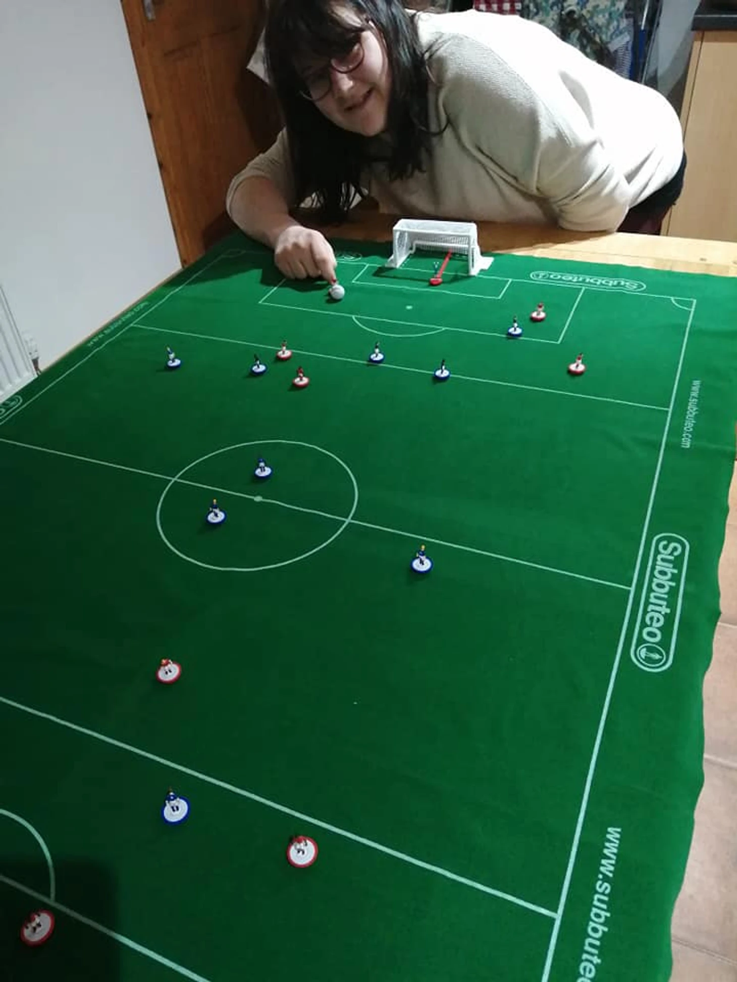 Довольно известный в мире британского граундхоппинга Гарет Томас делится идеей – можно же устраивать свои матчи по настольному футболу Subbuteo, где в отличие от отечественных вариантов игроками управляют щелчками пальцев.Таким образом игра максимально приближена к реальным событиям на поле.