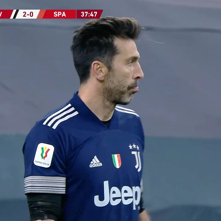 Джиджи Буффон защищает ворота «Юве» с первых минут в кубковом матче со СПАЛом.