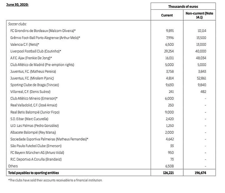 В разборе висящих на «Барселоне» трансферов мы обнаружили 5+5 млн евро долга перед «Атлетико» за pre-emption rights (преимущественное право купить/продать кого-то). На самом деле 5 млн сейчас и еще 5 млн через год – это вторая и третья часть от 15-миллионной выплаты каталонцев.