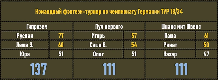 Пул первого все равно продолжает держать безопасную дистанцию, Шнапс скатывается в бездну таблицы общего зачета.