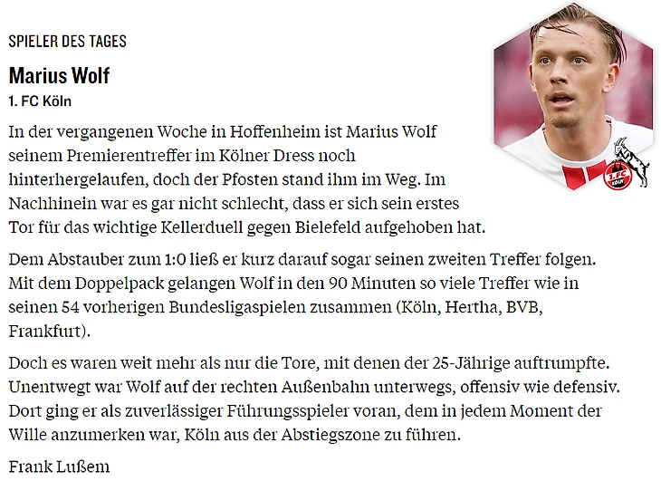 2 - Мариус Вольф которому ранее в этом сезоне не удавалось забить, забил в матче с Билефельдом с двух ударов два гола и оформил свой первый дубль в своей профи-карьере.
