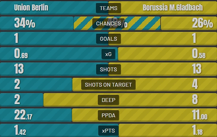 Игра против гладбахской «Боруссии» получилась очень равной и упорной. Это отражает примерно равная статистика, кроме того факта, что «черно-белые» подавали угловые чаще (9:2). В составе «жеребцов» стоит отметить отличившегося нападающего из Франции Алассана Плеа, которого по ходу нынешнего сезона мучают травмы. Однако в игре против «Униона» он провел на поле все 90 минут и сравнял счет, тем самым заработав для команды важное очко и не позволив прямому конкуренту выиграть. При этом «Боруссия» расположилась после окончания игр 19 тура на седьмой строчке, а берлинский коллектив – на восьмой. Напомним, что топ-6 сыграют в еврокубках в будущем сезоне.