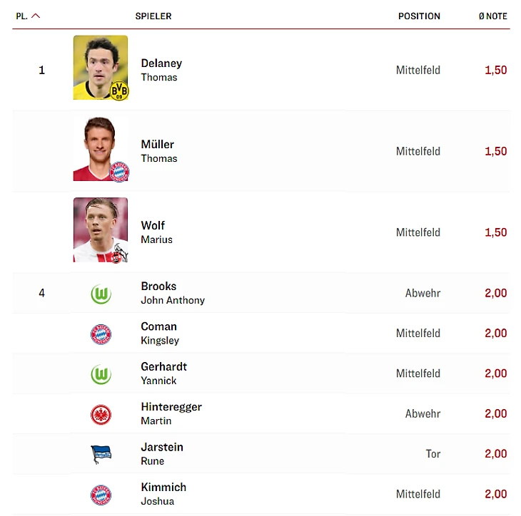 6 - Томас Дилейни забил в матче между Дортмундом и «Аугсбургом». Датчанин забил шесть из 11 своих голов в Бундеслиге головой.
