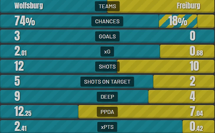 Укус волка Сенсации не произошло и в матче в Вольфсбурге. Хозяева, которые набрали какой-то невероятный ход, учинили настоящую расправу над не самым слабым «Фрайбургом», который, правда, традиционно тяжеловат в гостях и больше любит свой уютный стадион в Шварцвальде. Причем хозяева еще и отдали инициативу сопернику (общий процент владения 47 против 53). Понятно, что это произошло во втором тайме, когда у «волков» было хорошее преимущество в два мяча, которое они смогли добыть в первой половине встречи.