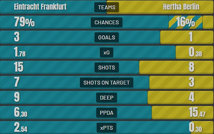 1 - у «Герты» было сразу четыре дебюта в матче с Франкфуртом (1:3): Рун Ярштайн, Сантиаго Аскасибар и Лукас Клюнтер впервые сыграли в этом сезоне. Так же Пал Дардай провел свой первый матч в качестве тренера на своем втором сроке в этой должности у руля «Герты».