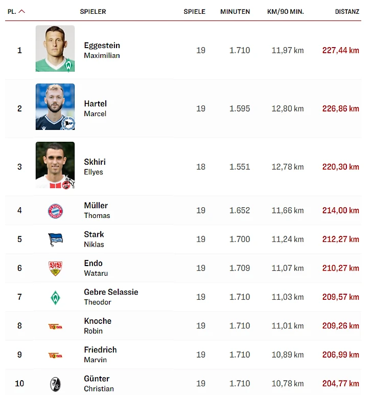 *игрок – кол-во игр – кол-во минут – в среднем км за 90 мин – всего км