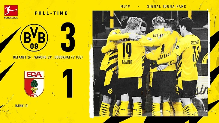 Долгожданная виктория «Шмели», которых не на шутку лихорадит в последнее время, в игре 19 тура наконец порадовали своих поклонников. Причем до этого дортмундцы не знали побед в трех встречах (два поражения и один мирный исход). Под горячую руку попал «Аугсбург», который здорово начал, открыв счет уже на 10 минуте усилиями Андре Хана. Пустая «Сигал Идуна Парк» разочаровано, как будто покачала головой, а спустя 11 минут еще и Холанд сотряс перекладину. Это уже никуда не годилось.