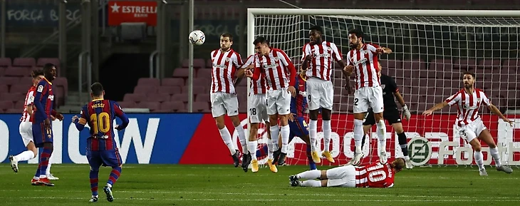 «Барса» начала немного непривычно – с владения. Обычно при Кумане есть общая черта у матчей с любым соперником: каталонцы часто отдают мяч с самого начала на первые несколько минут. Но вчера было иначе, Блауграна сразу забрала игровой снаряд себе и некоторое время не отдавала его. Уже на 5' был отличный момент у Месси после паса Гризманна, дальше каталонцы наращивали напор. К 20' критическая масса моментов достигла максимума и случился гол: Лео заработал штрафной и в лучших традициях его реализовал, попутно заставив соперника впечататься в штангу, что лишь слегка добавило драматичности и красоты эпизоду.