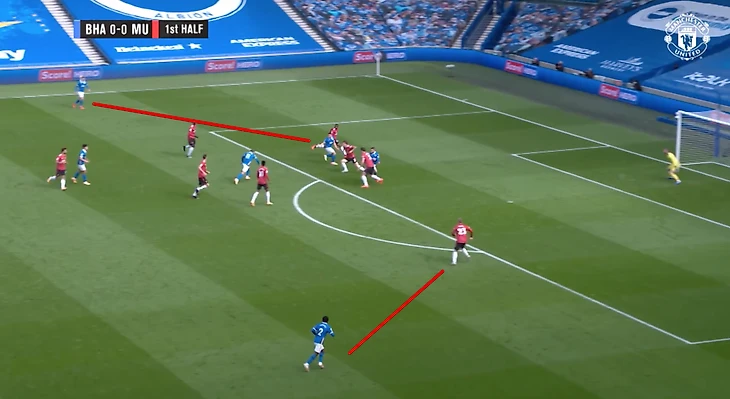 Именно поэтому АВБ так важен для «Юнайтед» — его умение обороняться 1-в-1 по сути цементирует не только правый фланг, но и центральную зону. Вернёмся ненадолго к эпизоду из матча с «Арсеналом» — если бы соперник атаковал левым флангом, скорее всего Линделёф не стал бы смещаться на подстраховку так, как это сделал Магуайр.