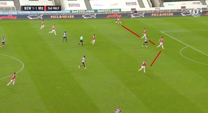 Я целиком поддерживаю решение перейти от забросов на столба к розыгрышу от вратаря, но билдап «Юнайтед» не идеален. Время от времени возникают проблемы с выходом из обороны под высоким прессингом, Бруну Фернандеш и Маркус Рашфорд много опускаются за мячом в центральный круг, уходя с позиций, в которых они опаснее всего.