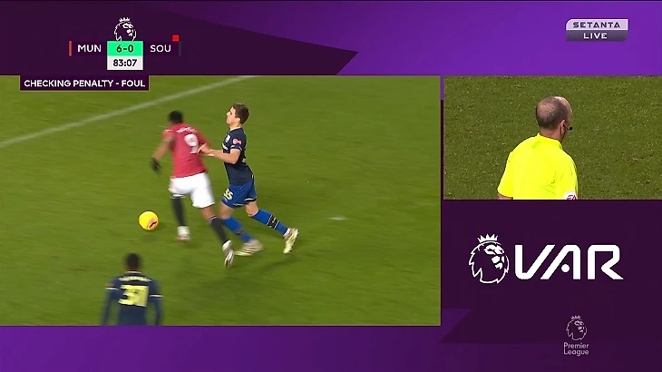 1. Отмененный гол Гринвуда. Когда сбили Кавани, либо это пенальти и ты ставишь железно на точку, либо игра продолжается, так как несмотря на фол ,мяч остался у атакующей команды. Гринвуд бьет в пустые ворота, гол, но судья останавливает игру, не давая при этом пенальти и украв заслуженный гол у Мэйсона. Если ты не уверен, то дай доиграть момент и как в случае с офсайдом, пересмотри ВАР. Пенка - так пенка, если не пенка, тогда атака обязана была продолжаться.