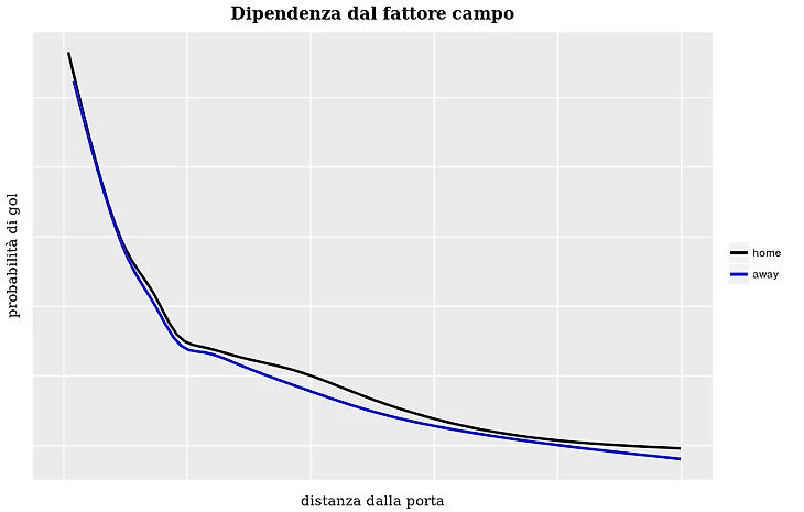 Фактор поля ослабевает и эта тенденция была усилена введением трехочковой системой подсчётов. Дома из тактических соображений команда может проявить лишь большую агрессию, но контратакующие модели ничуть не проигрывают противоположным. С точки зрения ожидаемых голов, домашние команды (черная линия), при прочих равных условиях, имеют крайне минимальное статистическое преимущество перед своими гостевыми противниками, как показывает другой график.