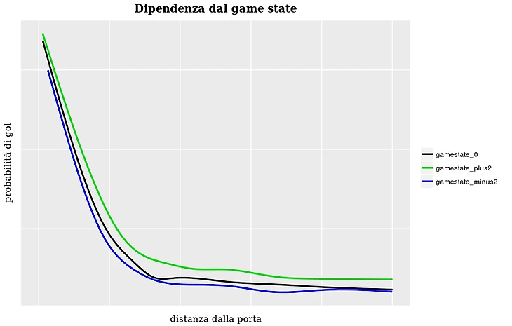 С другой стороны, была проблема с разностями передач под удар и ударами головой и стопой, и их разделили. Для того, чтобы забить гол, очень важно ударить ногой с выгодной позиции. Получение качественного ассиста также имеет значение. Графики вероятностей помогли Альфредо, который стал разбираться и в тонкостях вертикализации игры командой, и во влиянии фактора поля, а также - текущего счета на результат.